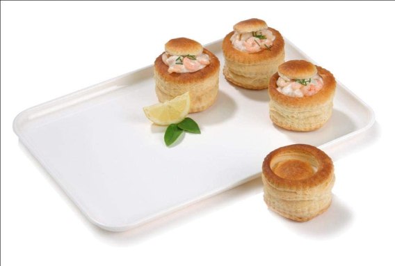 Białe plastikowe tace wykonane z wysokiej jakości melaminy to prosty, a zarazem wyrazisty sposób na prezentację produktów w witrynie, na bufecie lub przy stole.